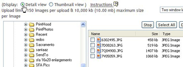 If you want to select which files to upload, or would like to rotate your files, you may choose to view them as thumbnails. Once you have chosen your desired files, and desired rotation, you may upload your files.